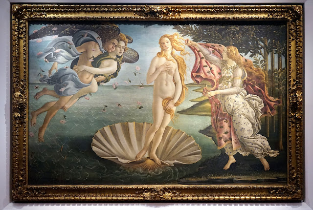 烏菲茲美術館的鎮館三寶是達文西的《聖母領報 (Annunciation, 1475) 》、波堤伽利的《春之頌(Primavera, 1478)》與《維納斯的誕生(Nascita di Venere, 1484)》。要知道這兩幅畫作塑造了幾位古希臘神話當中,女神的具體形象。換言之,所以西方人如果談到維納斯,腦海之中浮現出的影子,便是這畫中的人物。之後所有的藝術家,如果畫或雕塑維納斯,也就是這個樣子。所以來到烏菲茲美術館,這三幅畫一定要看仔細了。
